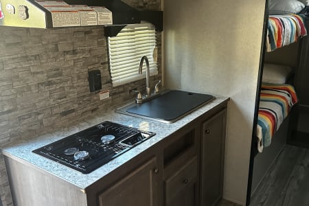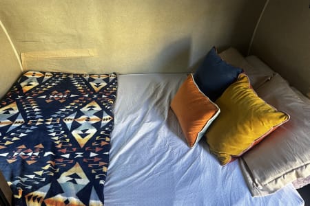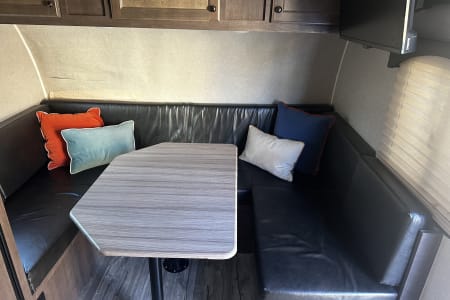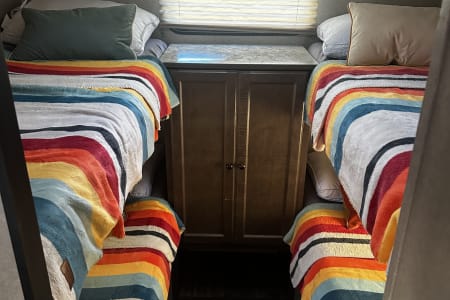 Sleeping up to 6 comfortably, our RV features two sets of twin bunks, ideal for the kids or additional guests, along with a spacious RV queen bed converted from the dining table. No need to sacrifice comfort for space!