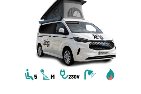 Pour ceux qui souhaitent partir à 2, 3, 4 ou 5 dans un van simple, fonctionnel, et basé sur le tout nouveau et superbe Ford Custom (hauteur <2m) le PANAMA P10 est fait pour vous ! Frigo, évier, douche extérieure, auvent, et chauffage stationnaire !