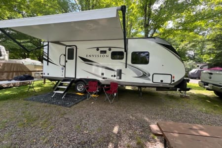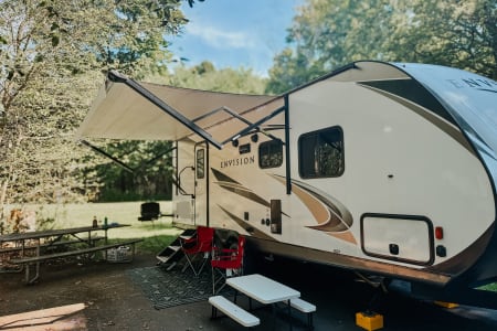 Whether you're planning a weekend getaway or an epic cross-country road trip, the Cozy Cross Country Traveler is the ideal choice. This modern 2020 Gulfstream Envision camper is equipped with all the comforts of home, offering the perfect balance of luxury and adventure for small families and couples.