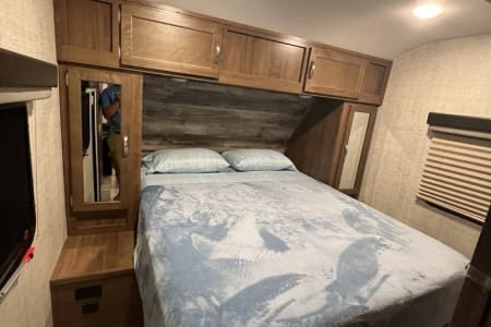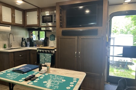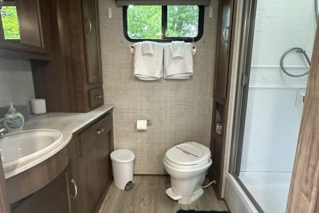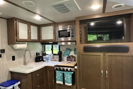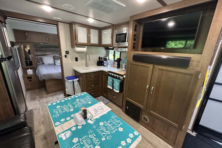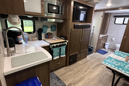 WHAT IS PROVIDED IN EVERY RENTAL: Keurig with hot cocoa, tea, coffee, sugar, creamer, all kitchen dinnerware and cookware, cups, plates, bowls, linens, blankets, pillows, towels, dish soaps, hand soaps, paper towels, garbage bags, tin foil, special RV toilet paper, toilet deodorizers, games/coloring books for children, Smart TVs, outdoor mat, cleaning products, etc. Leave all your extras at home!