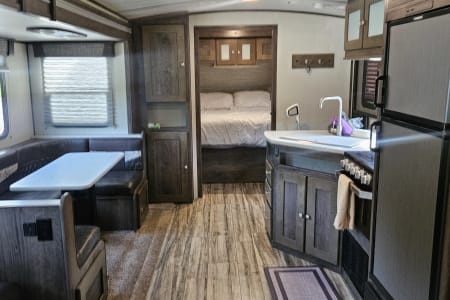 Unlike most other camper rentals offered online, the standard nightly rate for our unit gets you a fully stocked camper with everything you'll need during your trip: Kitchen Necessities & Cookware, Linens, Pillows, & Towels---K-cup coffeemaker, and even accessories to enjoy being outdoors during your camping trip (area rug, camping chairs, & a fold-up table).
