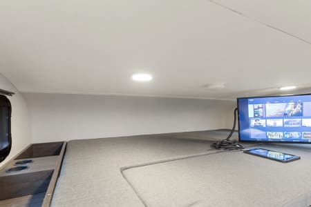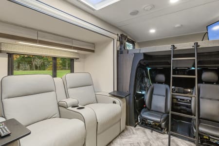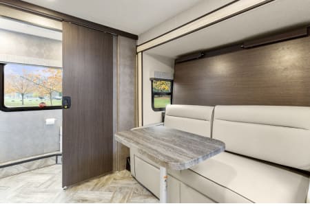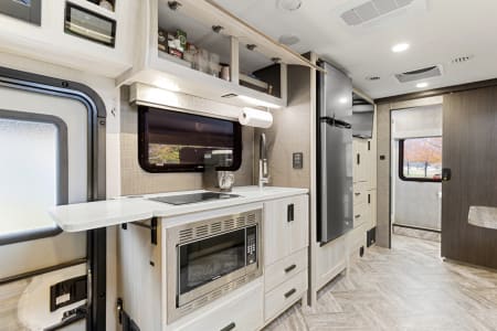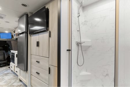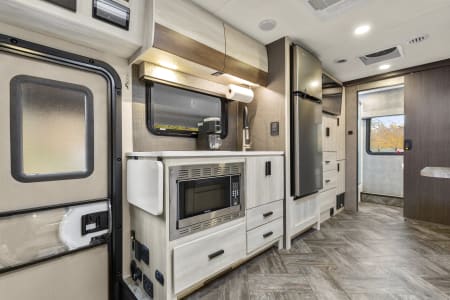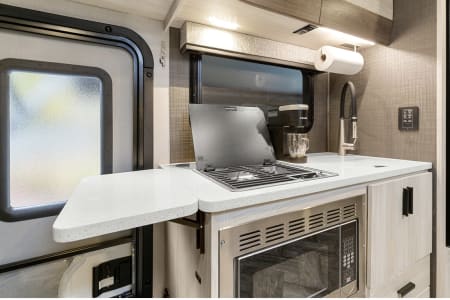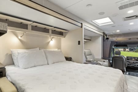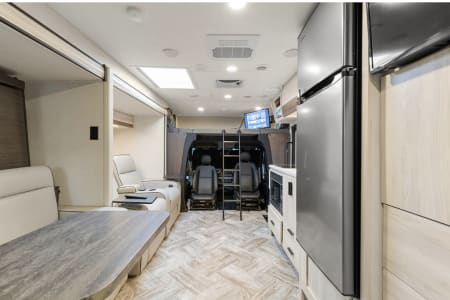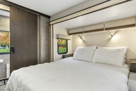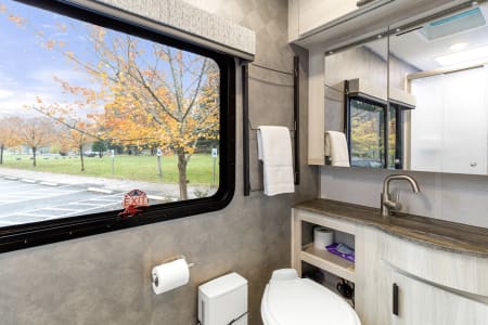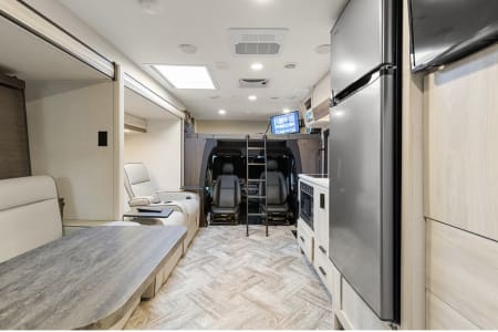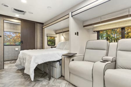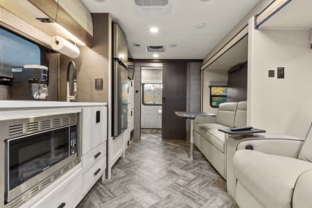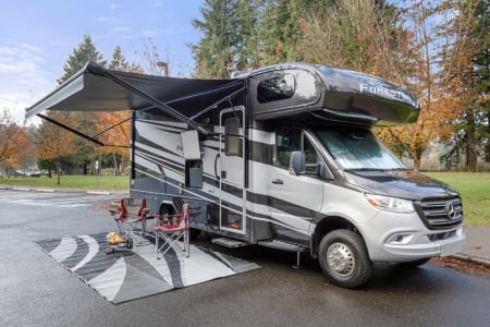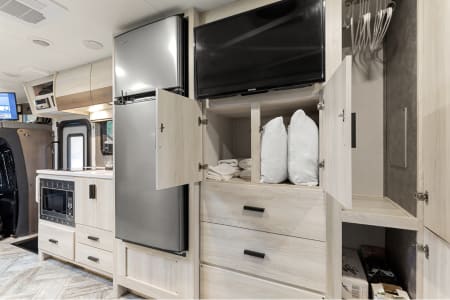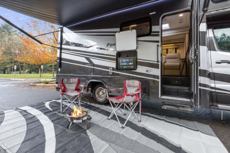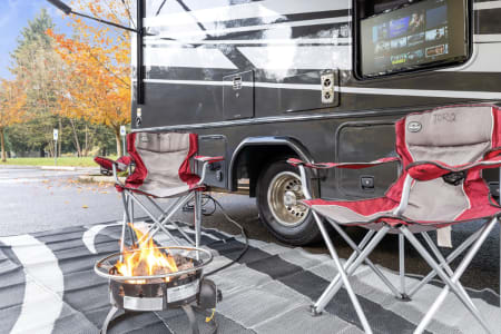 Mima’s RV, is great for a couple +2. It’s a fully furnished luxury motorhome, ready to hit the road. Our RV is very comfortable and easy to drive anywhere. Equipped with 180* camera and blind spot cameras for easy driving and parking. Plenty of storage inside and out! Once there, this RV sets it’s self up within 5 minutes with automatic leveling, push button full length slide out and a full length lighted awning with outside speakers. Includes everything you need for a typical camping trip! No paying for 'Add-ons' for things that should be included like linens, towels, camp chairs, black stone bbq fire pit, 2 paddle boards first tank of propane, etc! Those are included in the listing price! Throw out the outside awning camp mat and a couple camp chairs and enjoy the gas fire pit and or Blackstone Grill while watching a favorite show on one of the three 26” TV’s, all while keeping the batteries charged via a roof mounted solar panel. Included amenities: -fresh bedding w/extra -Throw blankets -Hair dryer -Fresh bath towels -Equipped kitchen w/dishes, utensils, keurig coffee and creamer and basic seasonings. -Awning camp mat -4 Folding camp chairs -Small folding outside table - Gas Fire Pit -Blackstone Griddle