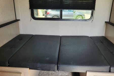 Has a slide out and a dinette that converts to a bed. Also has an awning