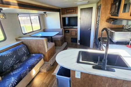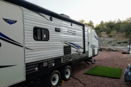 2018 forest river cruise lite. It can be pulled with half-ton pickups and has a 15-foot pop-out that gives a good medium of spaciousness and easy towing. The trailer was previously rented on Airbnb so it has all the comforts of home that you can take with you camping i.e. hot water, shower, kitchen, bathroom, a/c, heat, TV. There is a convertible bed, 2 futons, and a separate bedroom with a queen mattress for sleeping arrangements. Electric jacks, awning, and pop-out make for a quick and easy setup. Rental will include generator use at additional cost