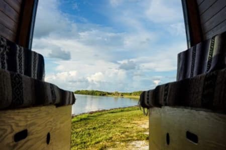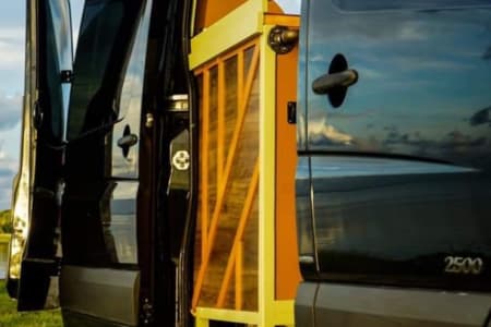 Van Diesel is a custom built Mercedes Sprinter van with beautiful wood interior and tons of storage. This is the perfect vehicle to explorida, or take wherever you want to go. The dining area converts to a nearly king size bed, and includes a projector for movies or TV in bed. There is also plenty of counter space for cooking gourmet meals using the 2 burner gas stove and/or oven. Cleanup is a cinch in the stainless steel sink with an extendable faucet. This van carries about 12 gallons of water that are easily refilled at any faucet without the need for additional hook ups. All the electric is connected to a solar-powered generator that charges while you drive or via a portable solar panel. After living in this van for over a year with my partner and small pup, we are excited to share our home on wheels with you!