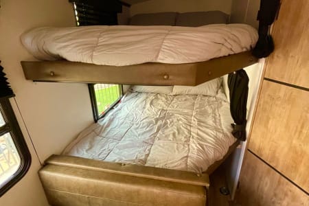Perfect for that family trip! With a cozy home away from home feel, this 28ft trailer will give you memories you simply will not forget.