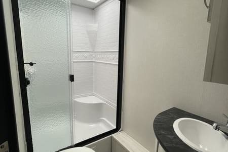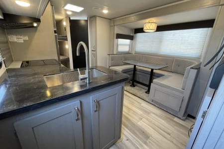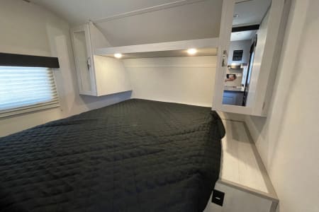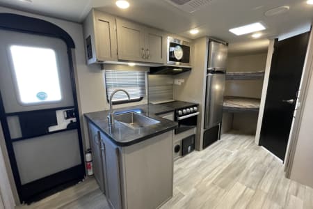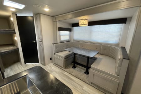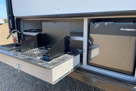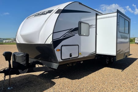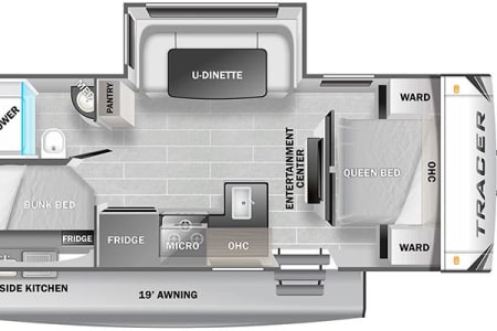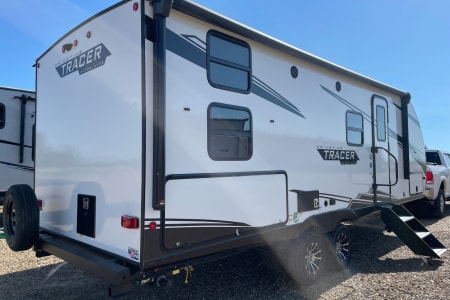Camp in luxury with this exquisitely equipped, 10th Anniversary Edition of the Tracer travel trailer. It can sleep the whole family in comfort with 1 private queen bed, two full size bunks, and a full-size convertible dinette. A small quiet generator gets you off the grid with enough power for the whole coach (excluding the AC). Other features include a fully insulated and heated trailer belly for winter camping, both a microwave and an oven, a cook top, sink and fridge inside and out, bathroom with a shower inside and outdoor shower, furnace, and a TV when you are forced inside because of the weather. Just bring your own food, drinks, and sense of adventure.