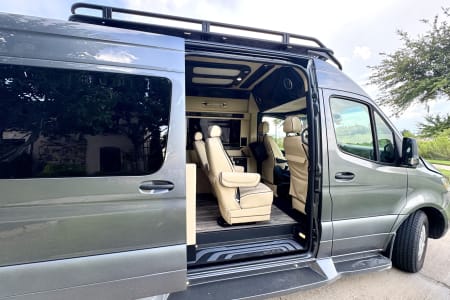 Comfort and luxury are a top priority. This new Ultimate Cruiser 144 offers all the luxurious amenities needed and is the same length as your typical SUV so parking and maneuverability are a breeze! It’s ideal for daily driving around town, and perfect for a large family, vacation, road trip, group outings, date night, sporting event, birthday, wine tour, business outing and more. Apple CarPlay is convenient for the driver and onboard Wifi is included FREE! The premium A/V system has high end speakers and 2 streaming TV's for Apple Tv, Netflix, gaming, business presentations and more! Seating includes 4 comfy Coach seats, 3 that swivel, and 2 bench seats that seat 4 and also lay down to make a bed. The windows have black out shades throughout for privacy. Walk around inside easily with the 144" high roof! USB outlets are located at each seat and wireless headphones are included for the TV. The back end of the Sprinter includes a toilet, refrigerator, sink and microwave! There is also an exterior TV connection for tailgating! This is traveling in luxury! This vehicle is currently FOR SALE also~contact us for details!