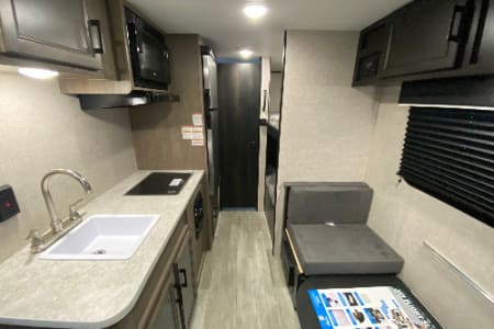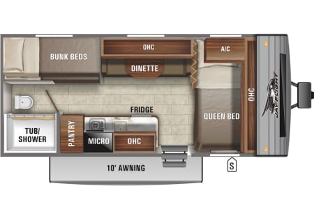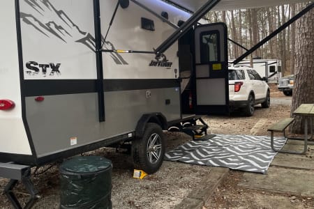 This Jayco SLX is a perfect fit for a couple getaway, or even a small family get away! It has plenty of sleeping space for everybody, a full bathroom, a full kitchen, a furnace, and even an air conditioner for the hot summer days!