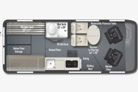 Two Queen bed sized sleeping set ups to make sure you & your travel partner(s) get quality sleep after a day of adventures! You'll love the climate control options in this rig. Whether you open up the screened windows for the cool cross breeze, or you power up the dedicated air conditioner, you will absolutely be comfortable. And if you want to use the integrated furnace by all means take advantage of the toasty warm furnace to keep you and yours comfortable. Super easy to operate from the cabin and at time of pick up we will go over all the features and how to use them.