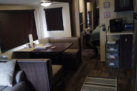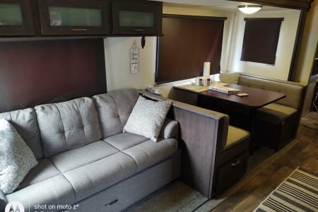 The RV is a great size (32' 11") and an ideal fit for a family of 4 or 5, but capable of sleeping 6. Roomy interior includes great amenities to keep any camper happy and supplied. We also have grab bars installed for mobility challenged guests. Rig comes with outdoor kitchen equipped with sink, prep area, grilling supplies, and gas grill.