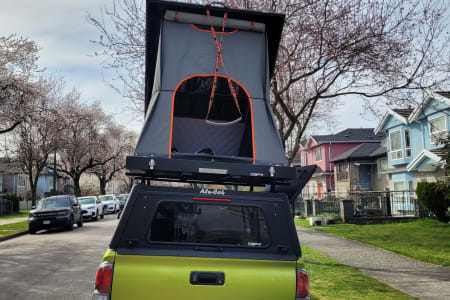 Our Tacoma rental is the perfect vehicle for those who crave off-road adventures and appreciate the convenience of a well-equipped camping setup. The Alu-Cab roof tent provides a comfortable sleeping space that can accommodate up to two people, and the included camping gear has everything you need to prepare meals and enjoy your time in nature.