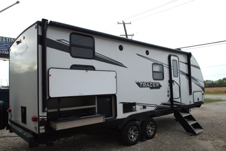 Our Brand New Sanitized 2022 Primetime Tracer Ultra Lite Bunkhouse that comfortably sleeps 8, with great upgrades that will make your getaway the best! Fully stocked with basic kitchen supplies, coffee brewer, starter RV toilet paper, and complete weight distribution hitch system.