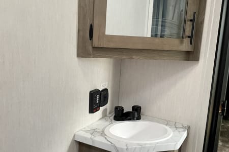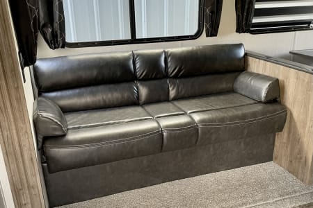 This like new toy hauler is sure to provide everything you need for a relaxing camping experience fit for the whole family! Relax by the indoor fireplace, or, enjoy the outdoors on the fenced in party patio. A great space for young kids to hangout!