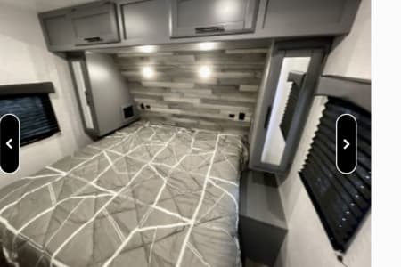 The perfect family friendly travel trailer! TVs in the living room, both bedrooms and the outdoor kitchen. This trailer has 1.5 bathrooms and plenty of storage. It has a 3 burner stove, small oven, microwave, indoor and outdoor sinks. The master bedroom has a king bed with a mattress topper, the second bedroom has a full, twin and couch that folds out as well as a half bathroom. This trailer will sleep 7 comfortably but can sleep up to 9. This camper is not for boobdocking, you will need full hookups with a 50amp, send me a message if you have any questions.