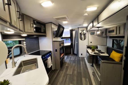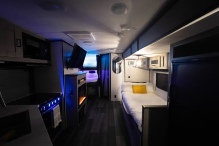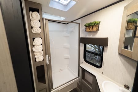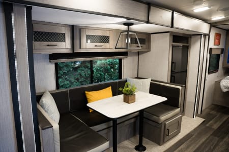 Sitting at a length of 29' 7" and 5,800 lbs, you can camp in comfort and style at your dream destination! It tows great! Upon pickup we make sure that we get you set up properly with our top of the line weight distribution hitch. We also offer delivery & setup if you prefer. We have spared no expense outfitting it with every possible item that would make your vacation hassle free and simple. We’re confident that all the latest amenities and upgrades will have you quickly falling in love with this trailer, just as we have. If you have any questions, please message us and we'd love to help. Thanks!