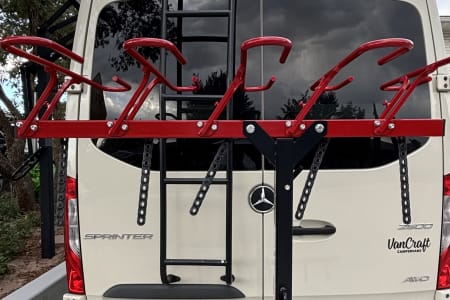 Enjoy four-season insulation to keep you warm in the winter and cool in the summer, a premium Pioneer sound system to keep the tunes going, and a leather interior to relax in after a day of exploring. Sleep soundly on our memory foam bed that can accommodate even the tallest travelers at 6’5". When you're ready to freshen up, take advantage of our outdoor hot water shower. A Thule awning, 4-season roof tent, peg board storage for skis, surf and snowboards, slider door bug screen, full running boards, and bench bed conversion kit, offers everything you need to make your trip unforgettable.
