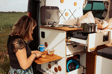 Tout le nécessaire pour cuisiner est fournis dans le van ainsi que pelle/balayette, torchon, serpière, raccord électrique, prise CEE et table et chaises de camping pour l'extérieur.