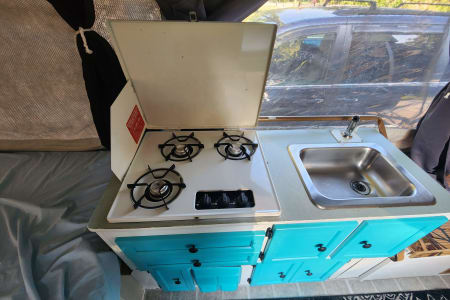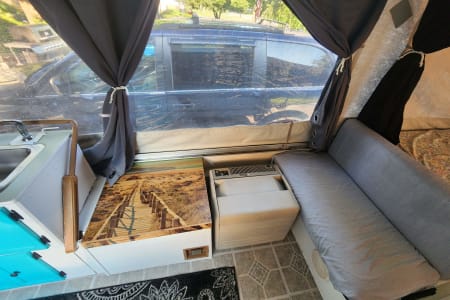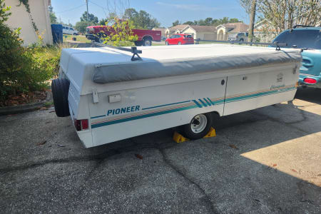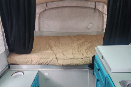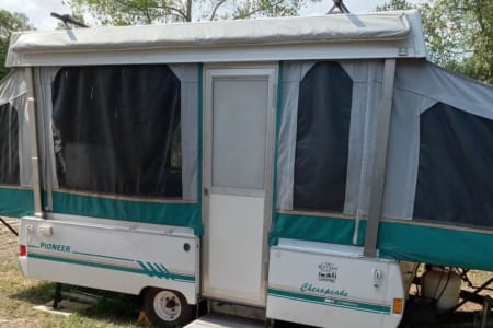 Super cute and fun Coleman pop up, sleeps 4. Stove range for cooking inside and out. Clean. Awning and porta potty provided. Exterior shower provided as add-on.