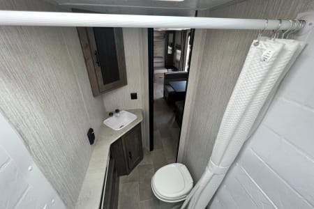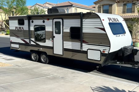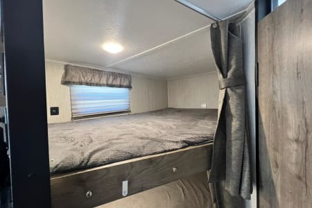 This is the trailer you have been looking for. It's ready to bring your adventures to life. At 26 feet it is easy to drive; couple that with the safety and piece of mind of a dual axel and you are ready to hit the road with confidence. Comfortably sleep six, with one murphy bed and double over double bunks. It's got you covered with all the amenities you want, TV, DVD, awning, dual propane tanks, power jackstand, indoor and outdoor shower, stocked kitchen with fridge freezer and stove and microwave.