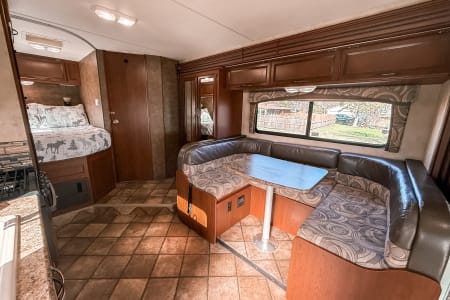 Our Thor Chateau motorhome is perfect for your next road trip. Whether you're traveling with family or friends, this cozy camper can comfortably sleep 5-7 people, making it a fantastic option for groups. The queen bed, dinette bed, and over-cab bed ensure plenty of resting space after your day of adventures.