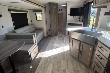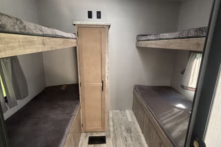 🥳The kids will love having a front bunkhouse with two sets of bunk beds.