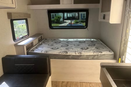 Propane fridge and heat, LED lighting, USB device charging and 20 gallon fresh water tank make it great for getting off grid. If you are able to plug in then the A/C will keep you cool in any weather.