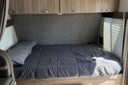 2 adults can sleep in full bed up front