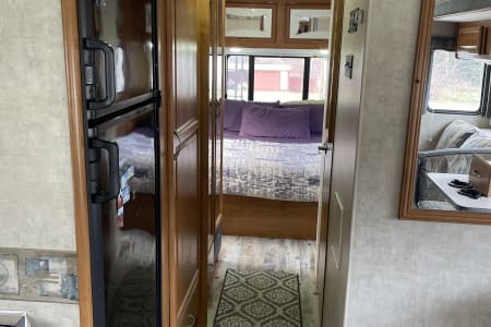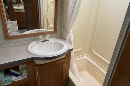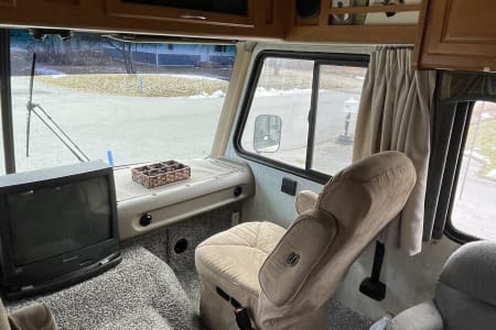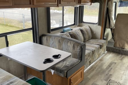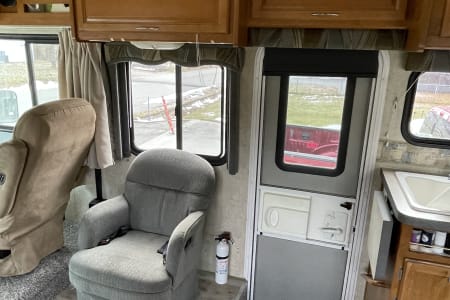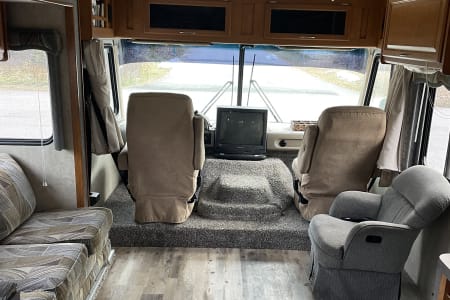 Welcome to our Class A motorhome! This motorhome has a queen bed, dinette that converts to a bed and a pullout couch with a full sized bed. The 12 foot slide out made it roomy for my husband, my 5 small kids and I. There is an old 90s tv in there and a DVD player for any movies you may wish to watch. The propane stove, refrigerator and microwave make cooking a breeze. There is also a 12 foot awning to help shield you from the Sun. We will include basic dishes, silverware, pots and pans in the RV as well as bed linens and blankets. This motorhome is obviously older but she is great for Alaska.