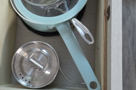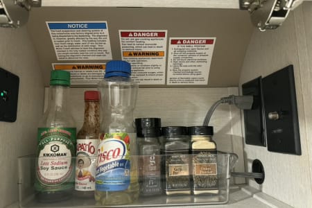 3. Fully Equipped Kitchen: Prepare your favorite meals on the go in the well-appointed kitchen, complete with a refrigerator, microwave, sink, two-burner stove, and ample counter space.