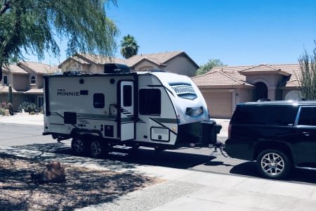 The Minnie is equipped with Tandem Torsion axles and off-road 235/75/15 Tires for added ground clearance on un-paved areas. Couple with the included Weight distribution hitch, pulling this RV to your destination is a breeze for most vehicles.