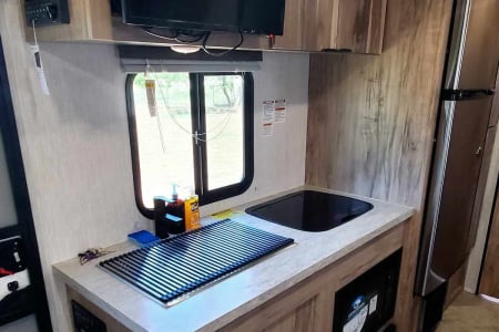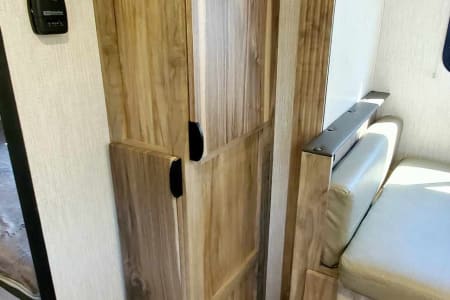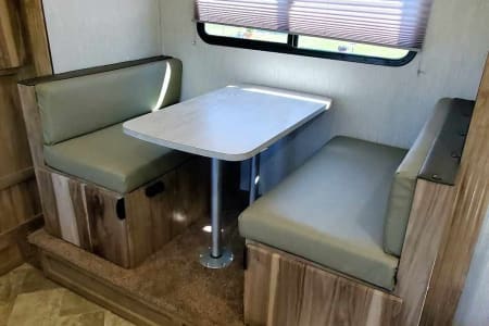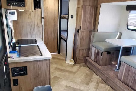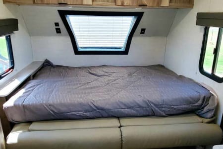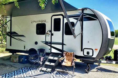 Ask me about my Polaris RZR 4 seater I have for use!! Palomini luxury OFF-ROAD packaged trailer! This RV is perfect for pulling with a smaller vehicle such as a Jeep or 4Runner, Tacoma etc. This Rv is designed to take to destinations where other rvs can't, and can handle even the toughest of trails. This RV is perfect for his+ her getaways, but can sleep up to 5. (2-3 adults+ 2-3 children) The bunks are perfect for kiddos and smaller individuals. However, if you are looking for something a little roomier, we recommend going with one of our other RVs if they're available. This RV is fully stocked- includes linens, blankets+ pillows for 4 beds, coffee maker, Towels, and soap. This RV has a bifold bed that can quickly and easily be converted into a queen bed in a matter of seconds, or be left made if you prefer! The RV has TWO bunk beds + dinette that converts into an additional sleeping area. The kitchen has a gas stove and cooktop, microwave, and sink, and includes basic kitchenware ( cups, bowls, plates, utensils, pots+pans, cooking utensils + silverware). The RV has a rooftop A/C, and a furnace for heating. Outdoor shower, Electric hitch, wheel chocks, and leveling blocks are included! The Rv will also include an outdoor rug, and indoor board games. We also have several other camping equipment available for an additional rental fee! Such as a WHISPER QUIET generator, large 10-person tent, 4-person tent, sleeping bags, air mattresses, and camping gas stove with cast iron skillets. Absolutely NO PETS OR SMOKING INSIDE. We are flexible with pickup and delivery times as we both own businesses, so can schedule pickup/delivery whenever is best for you!!!!!