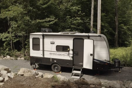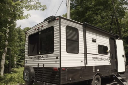 Welcome to your home away from home in a 2023 Springdale mini! This trailer requires minimal set up and is light enough to be pulled by either an suv or truck. At only 21 feet, this trailer can fit almost anywhere but is spacious enough on the inside to accommodate up to three people. The large windows make this camper feel light and airy, with lots of natural light and ac for hot summer nights. Book your next adventure today!