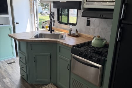 Everything has been redone in this camper. Everything is new and painted and we hope to give a light boho vibe that’s functional for the entire family.