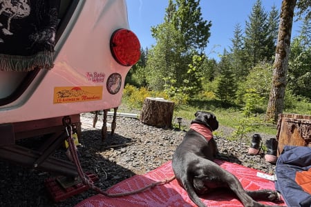 - New Summer 2025: I’ve installed a Shady Boy awning! It’s huge and easy to set up for shade right outside your door. Comes with guylines to secure it in heavy wind.