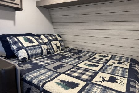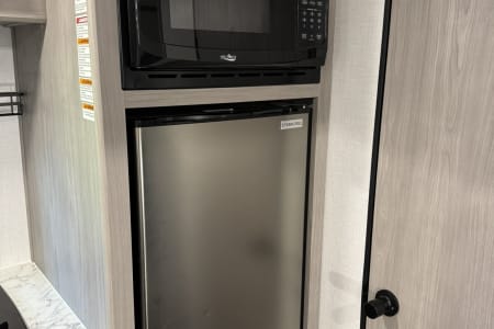 The easy to tow, 2024 travel trailer provides a low stress getaway for up to 4 guests. For your comfort we've upgraded the queen bed with a memory foam mattress. The camper comes equipped with microwave, gas stove and refrigerator.