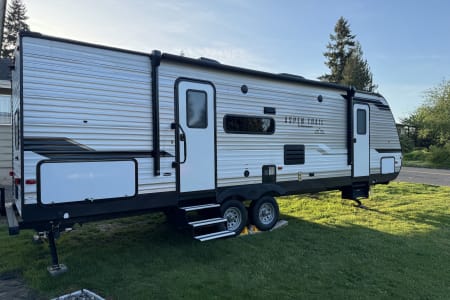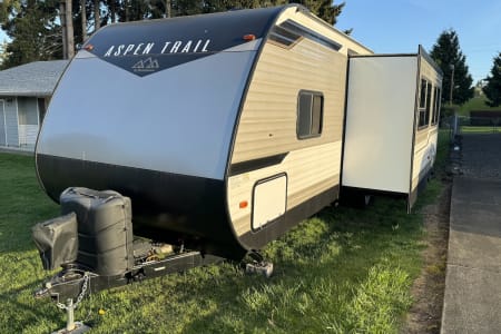 I am offering my 2021 Dutchmen Aspen Trail 2850BHS for others to enjoy in their adventure! This camper can sleep up to 8 people, but 6 would be the most I would want to share with. This trailer has everything you need including and awning with outdoor fridge and grill, outdoor shower, plenty of storage. This trailer is able to power most of the outlets, speakers, all lights. If you need A/C and heat, it is included in this travel trailer. I am looking forward to talking to anyone that wants to experience Pacific Northwest from this awesome travel trailer!
