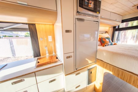 Meet Sandy, the ultimate off-grid adventure van. This van was designed specifically to provide renters with the comforts of home while on extended road trips, during any Season.