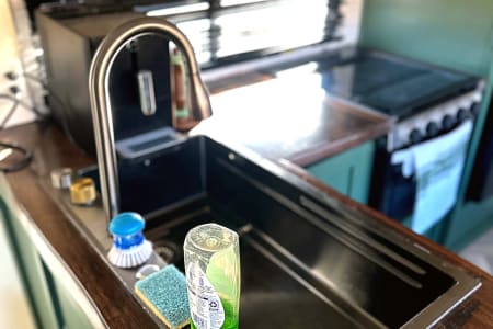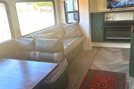 The living area is a very cozy, with comfortable seating, a warm fireplace for chilly evenings, and a sound system for your favorite tunes. For the hot desert days this RV is fortunate to have 2 AC units - one in the Master and one in the Living Room/Kitchen - if you're exploring SW Utah you'll want to make sure to escape the desert heat. This RV stays cool or warm, no matter what you need and is an inviting space for relaxation or enjoying the views through the large windows.
