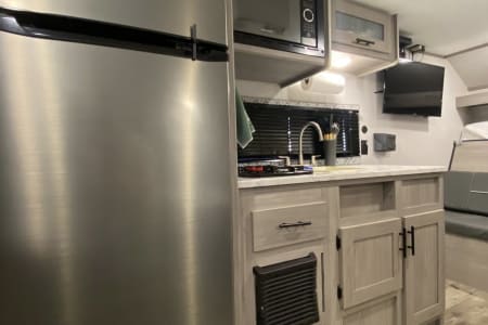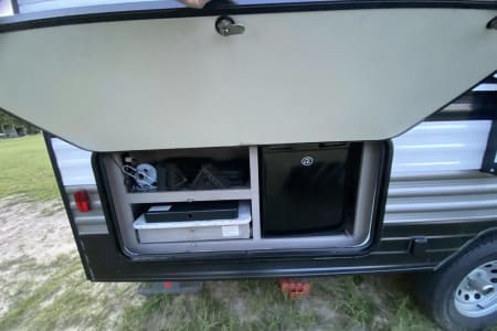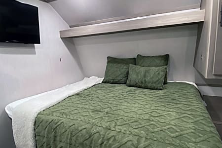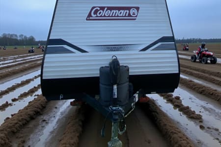 Inside, you’ll find a fridge/freezer combo and an extra mini-fridge outside for all your favorite snacks and drinks, plus a memory foam mattress to keep you sleeping soundly after a fun day outdoors. Whether you’re headed to the beach, the mountains, Mud Event, Weddings, or a music festival, this camper makes every trip comfortable and stress-free.