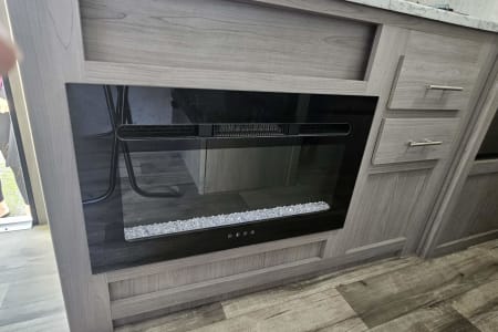 This trailer sleeps 5, (tight 6) and comes with a AC unit, heater/electric fireplace, fridge, microwave, toilet, shower, kitchen sink and stove. Perfect for camping trips, music festivals, or a simple getaway to spend time in nature. AC and microwave run on shore power only. Stove and heater run on propane.
