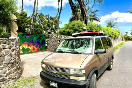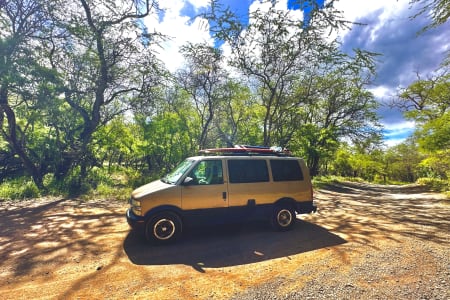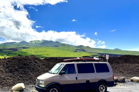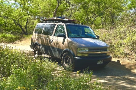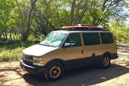 Has surf racks on top with surf straps for my guest that like to shred . Hard wood floors. So anything tracked in is easily cleaned up .