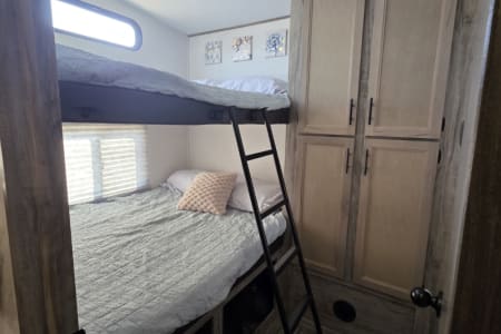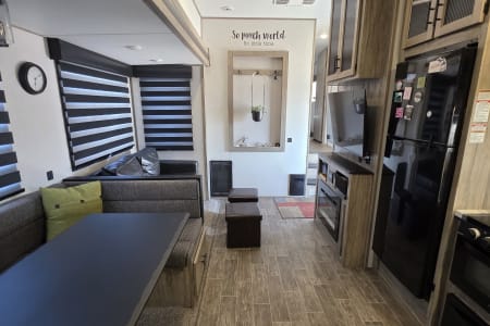 The Arctic Wolf is great for a wolf pack...or two! This camper sleeps 10 and boasts two bedrooms, which means the kids or a second family can have their own space to relax and store their gear. The indoor and outdoor kitchens, microwave, oven, and large refrigerator give you plenty of cooking options for nights when you don't feel like cooking over open flames and a full set of cookware, dishes, and other kitchen items are included. The Wolf boasts a DVD and game collection, along with two Smart TVs, to make those rainy days or cold nights inside bearable. You might even wish for rain so you can enjoy the fireplace while you sip drinks on the couch. Some linens are also included - all you need to bring are clothes and food!