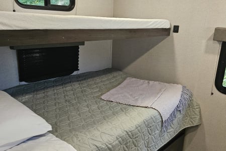Discover the ultimate road trip experience with our 2023 top-of-the-line RV rental, designed for making lasting memories! Relax in the master suite with a cozy queen bed, while kids or guests enjoy the separate, spacious bunk room with a pull-out sofa. The modern interior features audio system, a full booth dinette, and a well-equipped kitchen with a deep stainless steel sink. Embrace the great outdoors with amenities like an exterior fridge, BBQ, outdoor shower, and a full awning with LED lights. Enjoy your favourite tunes through exterior speakers and refresh in the walk-in shower after a day of adventure. With a backup solar generator to keep you powered, this RV is your perfect companion for an unforgettable journey.