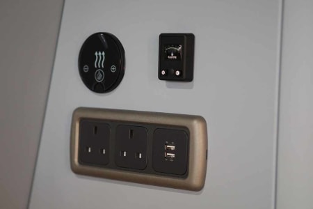 - Gas hob, fridge freezer, gas heating with built-in tank, Sink and external shower