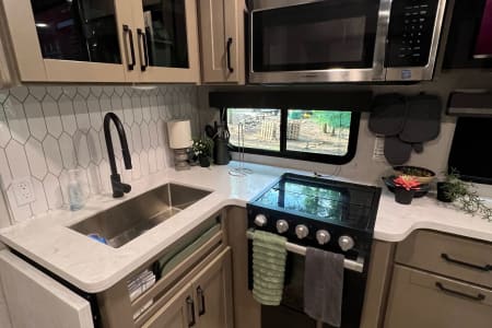 Audrey Rose is a family (and one small dog) friendly travel trailer, packed with the gear you need to enjoy the great outdoors, cook meals for you, friends, and family, and enjoy a few games on those in-camper days.