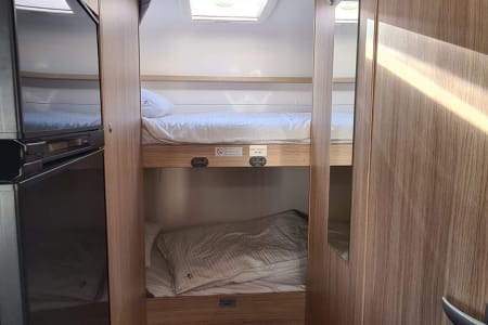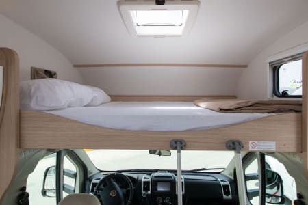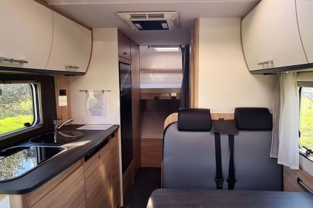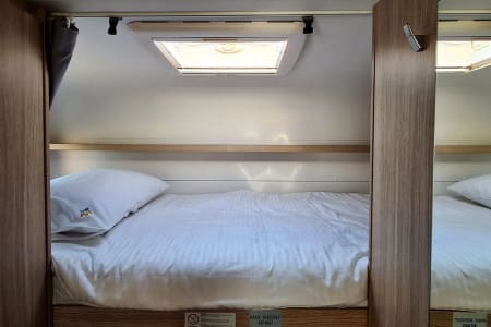 This fantastic 6 berth coachbuilt motorhome is built with the usual high standard German build quality. The spacious Sunlight A68 is excellent for families and features a modern and vibrant interior packed with the latest technology. The layout is both practical and functional and features a King size double bed above the drivers cabin and bunk beds in the rear and a double bed in the dinette. The spacious dinette can seat four people and has a total of six seat belts. The A68 boasts a large garage with enough space for all of your gear and valuables. The separate large refrigerator and freezer is a must with enough space for all of your provisions. The Combi boiler and heater can be operated on either gas or electric an efficient cost saving especially out of season.