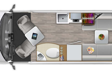 Goldie is a loaded 2019 Roadtrek ZION equipped with Lithium batteries and an under hood generator (no noisy separate generator) She has Volt start which allows you to run the coach air conditioner for up to 3 hours on battery power alone. Once the batteries get low, the engine will automatically start and recharge the batteries for 30 minutes then shut itself off. The interior is fitted with real wood cabinets, recessed LED lighting, granite countertops, a large 12v DC refrigerator and freezer, a 12v Propane heater, and instant hot water heater, a smart 12v TV (Youtube, Netflix, etc.) and Blu-ray player, a power rooftop Antenna, a King size bed and more. She gets great gas mileage for a Van, 18 mpg highways, 14 mpg around town. I offer lots of optional add on's including Star Link which gives you high speed internet just about anywhere. We love using it to stream our favorite music or shows on the smart TV when were off grid. For those not from California, many of the top camping areas have no cell signal (Big Sur, Yosemite, Redwoods National Park, Pinnacles National park)