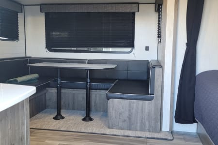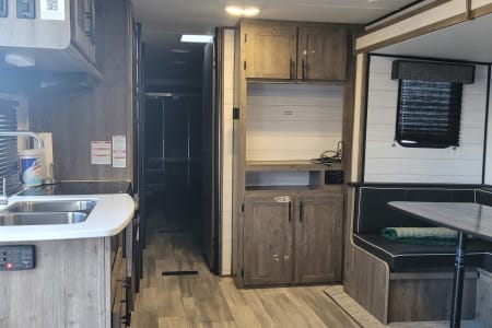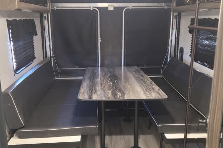We have a (basically) brand new toy hauler. We've used it once. It fits our 2 seat SXS (71" tall, 60" wide, 118" long). It has been cleaned and serviced as of October 2023. We have stabilizer bars for additional support when towing.