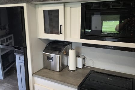 Fully Equipped Kitchen: Our RV comes complete with a fully equipped kitchen, featuring pots, pans, utensils, and everything you need to whip up delicious meals on the go. Whether you're cooking a hearty breakfast or preparing a gourmet dinner, you'll find all the tools you need right at your fingertips.